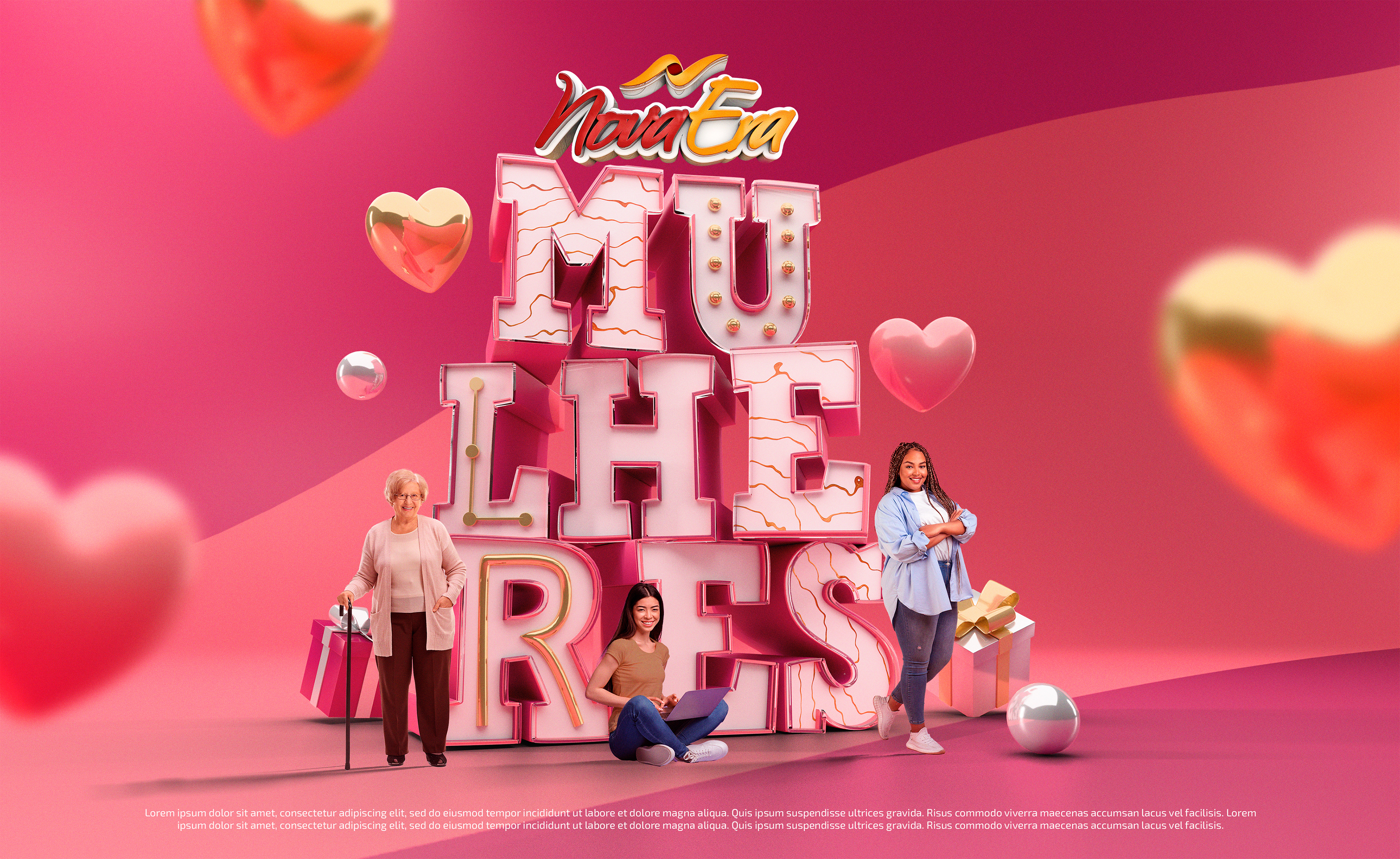 Tipografia expressiva e presença feminina real para homenagear a diversidade e a força das mulheres de todas as idades.