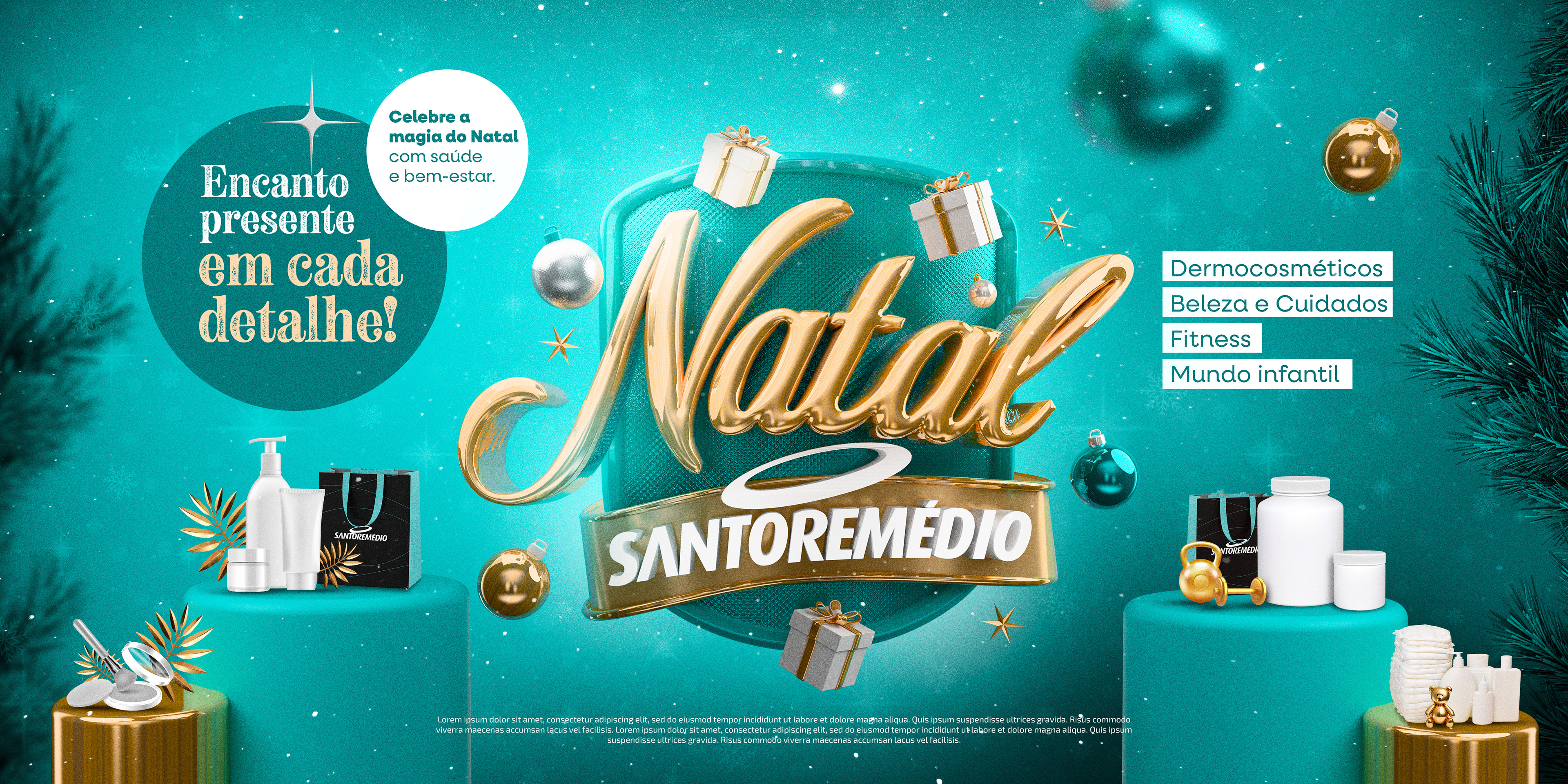 Design refinado e festivo que exalta o bem-estar e o autocuidado, com uma estética natalina que destaca cada produto como um presente.